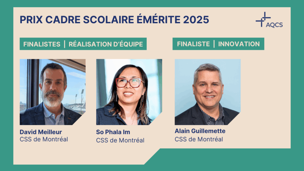 Pour une 2e année consécutive, des gestionnaires du CSSDM se hissent parmi les finalistes d’un concours de reconnaissance de l’excellence des cadres scolaires.