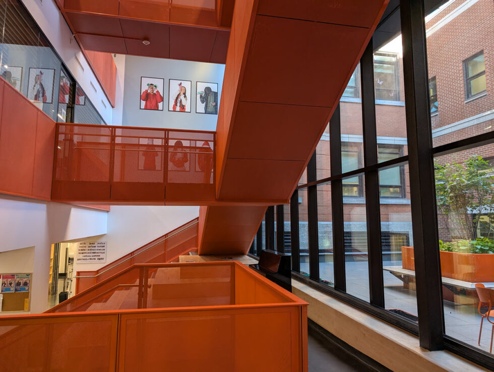 Grâce à une conception architecturale audacieuse, la rénovation de cette école s’est distinguée par la création d’un escalier central spectaculaire, pensé à la fois pour faciliter la circulation et pour offrir une expérience marquante aux élèves et aux membres du personnel. L’école imprègne l’imaginaire au premier coup d’œil grâce à ses couleurs vives dans les tons d’orange. Sa grande fenestration permet aussi à la lumière naturelle de mettre en valeur les nouveaux aménagements.
