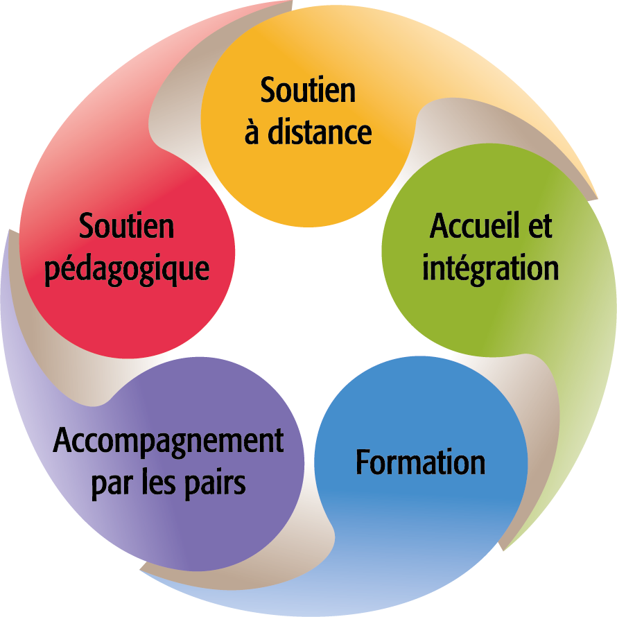Le soutien à distance est offert par les conseillères pédagogiques de l’IPE. C’est une offre d’écoute et de recherche de solutions pour les directions, les personnes mentores et le personnel enseignant en insertion professionnelle.